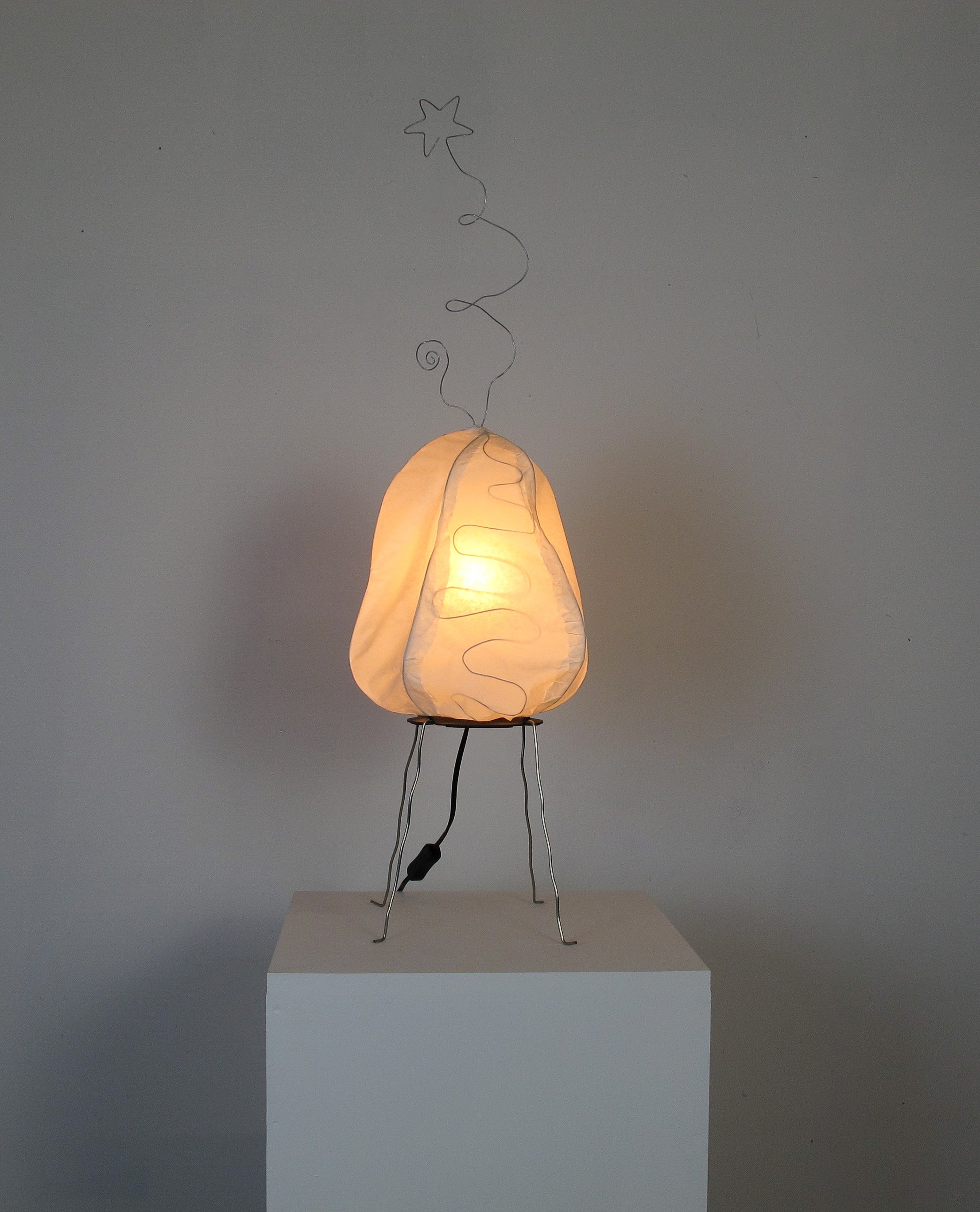 Insomniac, 2025, Washi paper, stainless steel, light fitting, 85 x 28 x 26 cm (inc. legs)